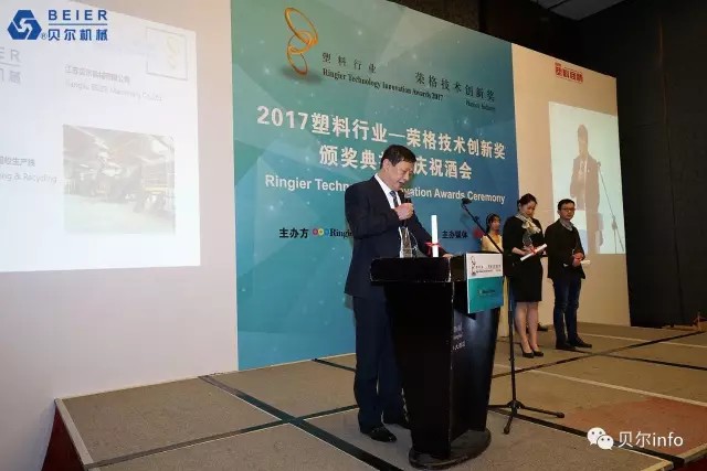 江蘇貝爾機(jī)械6000KG/H PET清洗回收生產(chǎn)線(xiàn)榮獲 2017榮格技術(shù)創(chuàng)新獎(jiǎng)。榮格工業(yè)傳媒總裁馬國(guó)熙先生致辭時(shí)提到的:"今年所有的獲獎(jiǎng)產(chǎn)品都是實(shí)至名歸,有些技術(shù)成功填補(bǔ)了國(guó)內(nèi)市場(chǎng)的空白;有些技術(shù)極大優(yōu)化了傳統(tǒng)加工工藝技術(shù),從而表現(xiàn)得更加節(jié)能和高效;還有些技術(shù)在高性能和環(huán)保方面有杰出表現(xiàn)……所有的獲獎(jiǎng)產(chǎn)品都是優(yōu)中選優(yōu),而且今年的報(bào)名產(chǎn)品尤為注重在具體應(yīng)用領(lǐng)域的創(chuàng)新"。