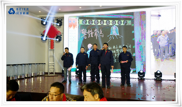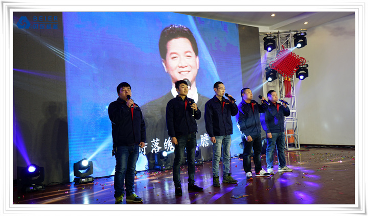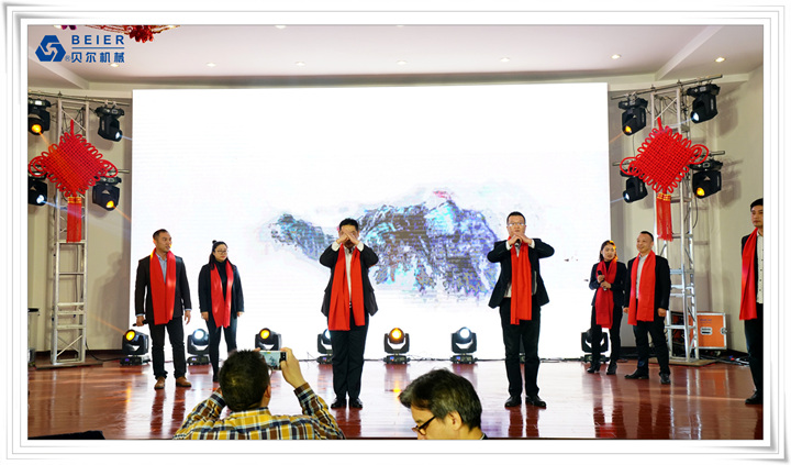 在表演開始前,董事長何德方致以新春致辭,他慷慨激昂地回顧了公司2017年取得的輝煌戰績一一感謝公司全體員工、各部門的辛勤付出,并展望2018年發展規劃,公司將繼續開拓創新,整合資源,所有貝爾人要攜起手來,為實現公司更高的目標而奮斗!得到了全體員工的熱烈掌聲!在喜慶的祝酒音樂伴奏下,何董事長舉杯向所有同事和來賓祝酒,新春晚宴在一片熱鬧喜悅的氣氛中正式開始。員工代表清洗組:楊愛萍進行了發言,她作為參與者,見證了貝爾機械二十年來的蓬勃發展,反映了貝爾自下而上的實干精神已經成為貝爾的企業文化。