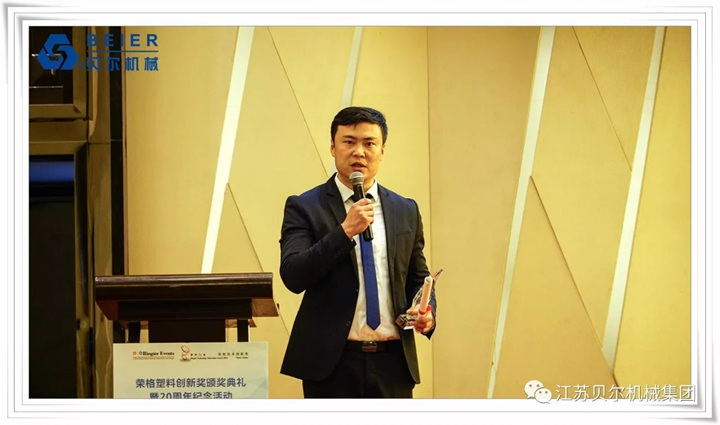 塑料行業是個朝陽行業,也是一個時刻充滿創新的行業,我們感謝行業里不同領域的企業為科技創新做出的杰出貢獻,感謝榮格提供了行業里權威的平臺,感謝江蘇貝爾機械研發團隊的辛勤工作,我們將再接再厲,堅定的沿著研發和創新的企業戰略前行,讓中國企業名列世界著名品牌之林。